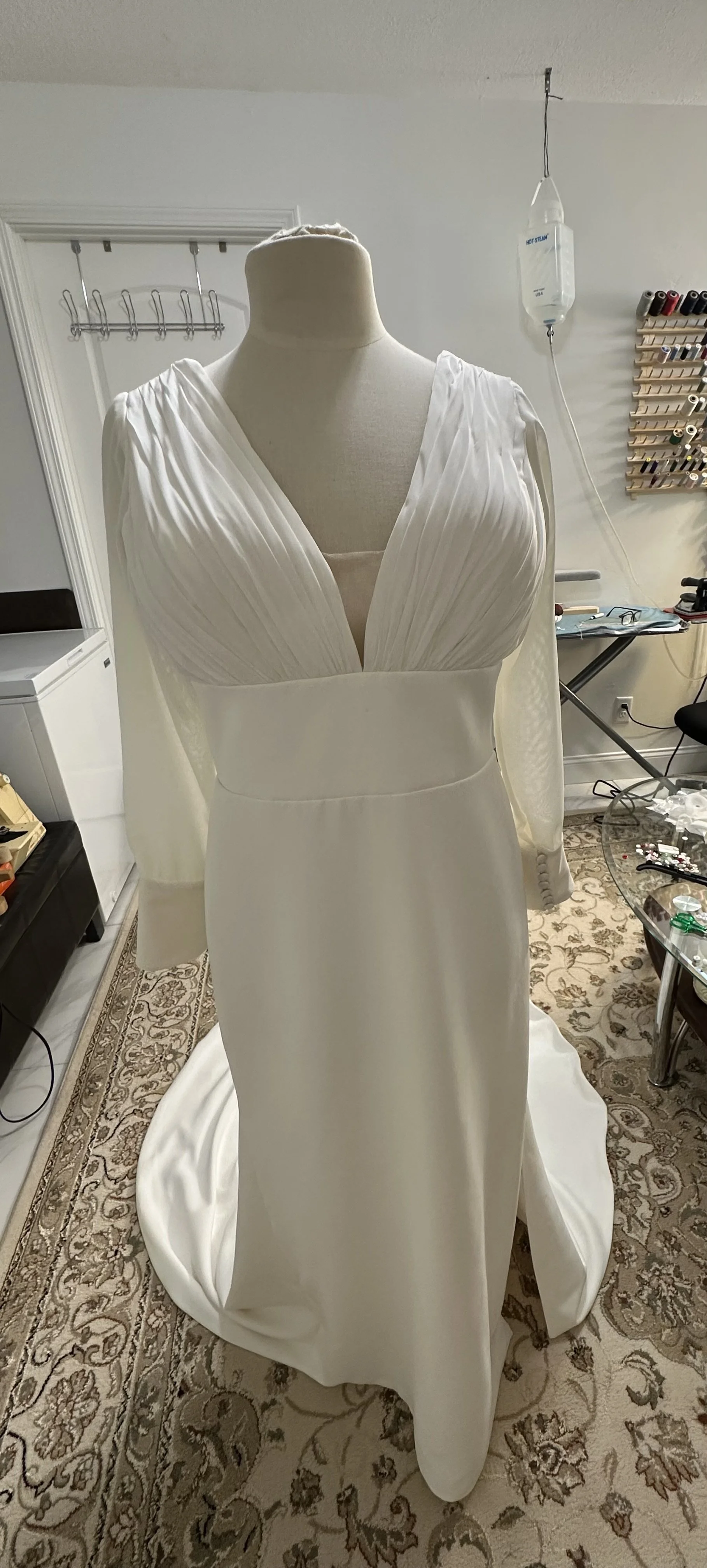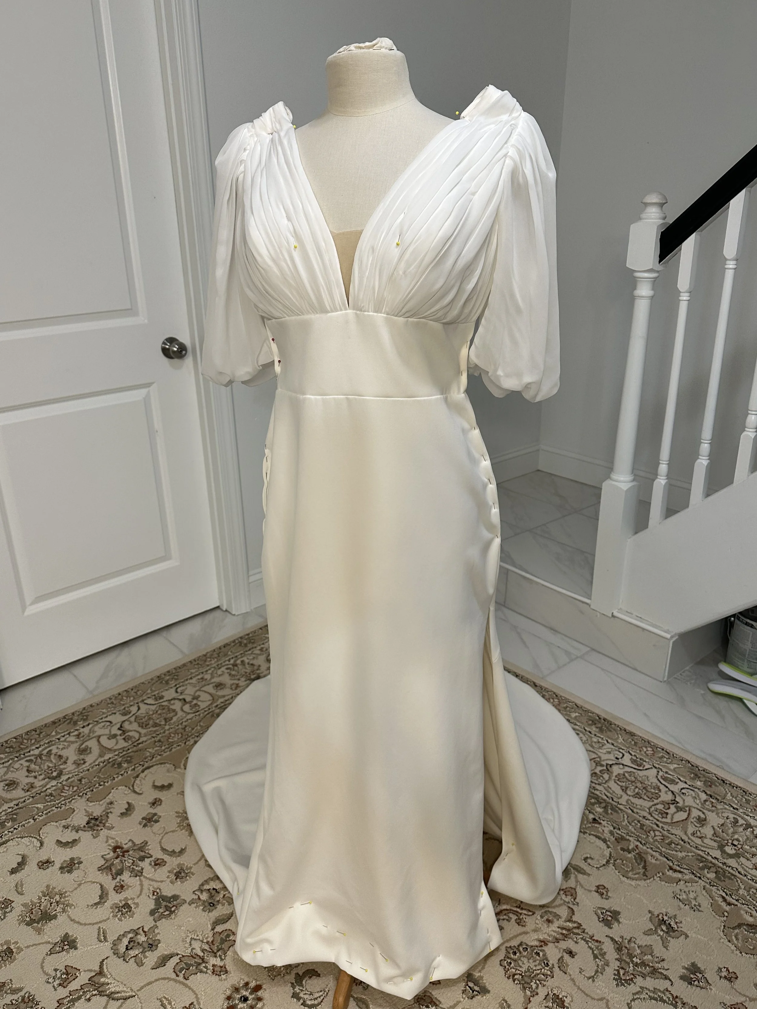 After/ original sleeves removed and replaced with custom made chiffon sleeves. Waist, sides and shoulders take in and hem shortened